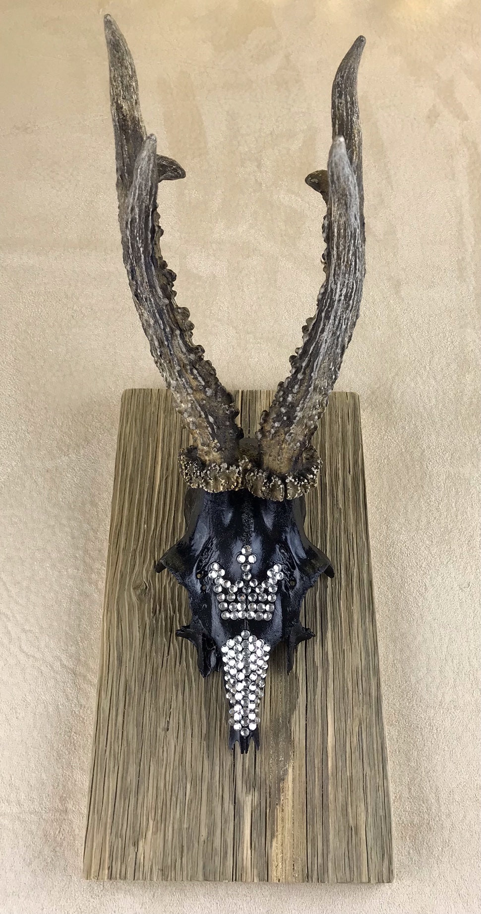 In beschränkten Räumlichkeiten findet der Wandschmuck mit Rehtrophäen aufgrund seiner kompakten naturgegebenen Größe immer einen Platz.